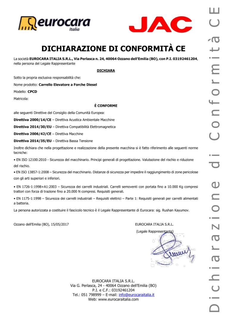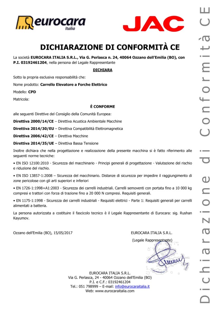Мы приняли решение расширить географию деятельности «Еврокара-плюс» и открыли официальное представительство и склад компании в итальянском городе Болонья. Наш выбор пал именно на Италию по той причине, что в этой стране наблюдается высокий спрос на качественные автопогрузчики китайского производства. Наши клиенты из Европы отмечают следующие преимущества спецтехники JAC: